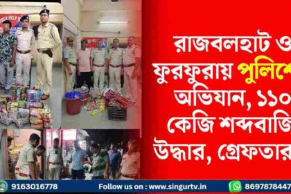 রাজবলহাট ও ফুরফুরায় পুলিশের অভিযান, ১১০ কেজি শব্দবাজি উদ্ধার, গ্রেফতার ২ সিঙ্গুর…