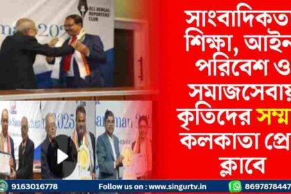 কলকাতা প্রেস ক্লাবে মহা সমারোহে ‘বঙ্গ গৌরব সম্মান ২০২৫’ প্রদান কলকাতা, সিঙ্গুর…