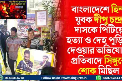 বাংলাদেশে হিন্দু যুবক দীপু চন্দ্র দাসকে পিটিয়ে হত্যা ও দেহ পুড়িয়ে দেওয়ার অভিযোগ, প্রতিবাদে সিঙ্গুরে শোক মিছিল
