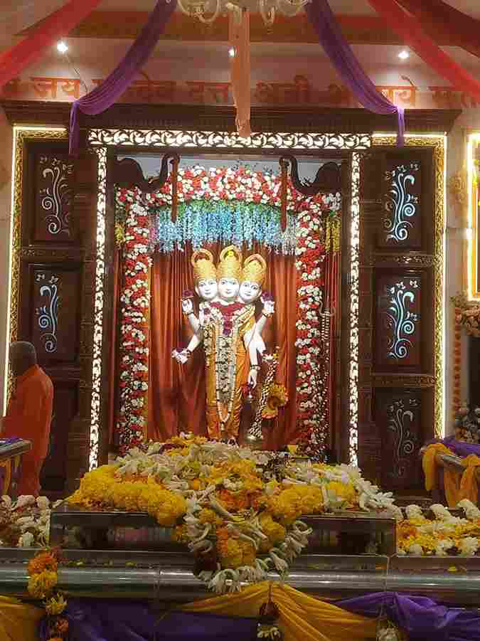 শ্বেত পাথরে নির্মিত মূল বিগ্রহের বিশেষ বৈশিষ্ট্য—একই দেহে বিরাজমান ভগবান ব্রহ্মা, বিষ্ণু ও মহেশ্বর।