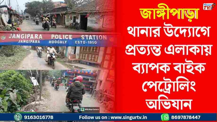 সকালেই হুগলি গ্রামীণ পুলিশ জেলার পক্ষ থেকে জাঙ্গীপাড়া থানা পরিচালিত করেছে এক বিস্তৃত বাইক পেট্রোলিং অভিযান, যা থানার অন্তর্গত প্রত্যন্ত এলাকায় চকপুর, ডিঙ্গালহাটি, সিঙ্গটি, হরিরামপুর, দিলাকাশ বাজার, কাপারপুর, প্রসাদপুর ও মোহনবাটি পর্যন্ত সম্প্রসারিত হয়েছে।