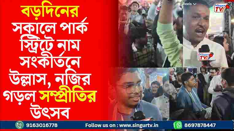 বড়দিন মানেই কলকাতার পার্ক স্ট্রিটে আলো-সাজ, উৎসব ও মানুষের ঢল। তবে বড়দিন ২০২5-এ পার্ক স্ট্রিটে দেখা গেল এক ব্যতিক্রমী ও হৃদয়ছোঁয়া চিত্র। বড়দিনের সকালে নাম সংকীর্তনের সুরে উচ্ছ্বাসে মাতলেন বাঙালিরা। খ্রিস্টান ধর্মের এই পবিত্র উৎসবের দিনে ভক্তিগীতি ও হরিনামের ধ্বনিতে মুখরিত হয়ে ওঠে পার্ক স্ট্রিট এলাকা।