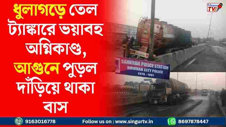 ধুলাগড়ে তেল ট্যাঙ্কারে ভয়াবহ অগ্নিকাণ্ড, আগুনে পুড়ল দাঁড়িয়ে থাকা বাস