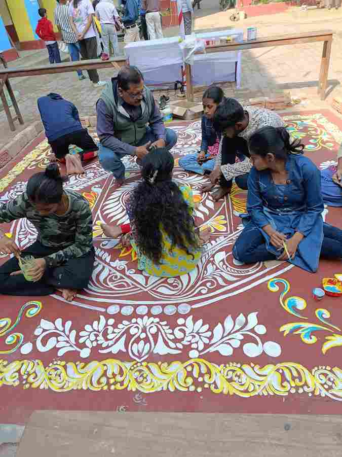 হাতে হাত মিলিয়ে, একসঙ্গে আলপনা আঁকার মধ্য দিয়ে ছাত্রছাত্রীরা শুধু শিল্পচর্চাই নয়, পারস্পরিক সহযোগিতা ও সহমর্মিতার পাঠও নেয়। এই সম্মিলিত প্রয়াস বিদ্যালয়ের শিক্ষাবাতাবরণকে আরও উজ্জ্বল করে তোলে। উৎসবের আনন্দে পড়ুয়ারা যেন নিজেদের বিদ্যালয়কেই নতুন করে আবিষ্কার করে নেয়।