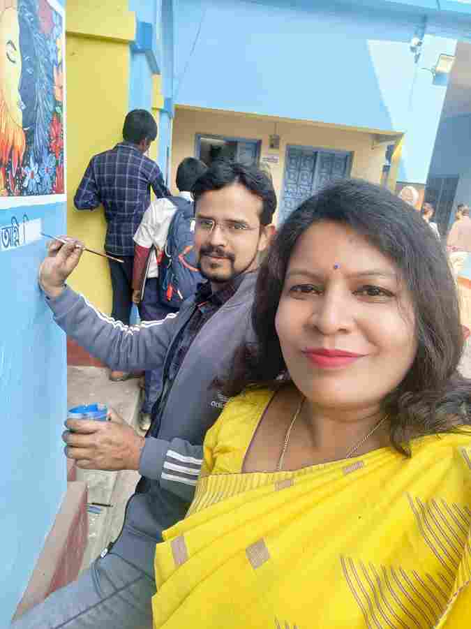 এই আয়োজনকে বিশেষ মাত্রা দেয় শিক্ষিকা ও ছাত্রছাত্রীদের যৌথ অংশগ্রহণ। শিক্ষিকারাও শুধু তত্ত্বাবধায়ক হিসেবে নয়, বরং সহযাত্রী হয়ে ছাত্রছাত্রীদের সঙ্গে আলপনা আঁকা ও উৎসবের আনন্দ ভাগ করে নেন। শিক্ষক-শিক্ষার্থী সম্পর্কের এই সহজ, আন্তরিক মুহূর্তগুলি বিদ্যালয়ের শিক্ষাদর্শনেরই প্রতিফলন। একসঙ্গে তোলা সেলফিতে ধরা পড়ে সেই সৌহার্দ্য ও আনন্দের স্মৃতি।