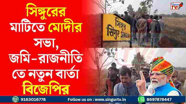 এদিন বিজেপি নেতৃত্ব সিঙ্গুরে টাটা মোটরসের ছেড়ে যাওয়া জমি সহ সংলগ্ন একাধিক মাঠ ঘুরে দেখেন। উপস্থিত ছিলেন বিজেপি হুগলি জেলা সভাপতি গৌতম চট্টোপাধ্যায়, রাজ্য বিজেপির সম্পাদক দীপাজ্ঞন গুহ সহ একাধিক নেতা। জেলা নেতৃত্ব জানিয়েছে, সিঙ্গুরের নির্দিষ্ট মাঠে সভা সম্ভব না হলে, সংলগ্ন এলাকার অন্য কোনও মাঠে প্রধানমন্ত্রীর জনসভা অনুষ্ঠিত হবে।