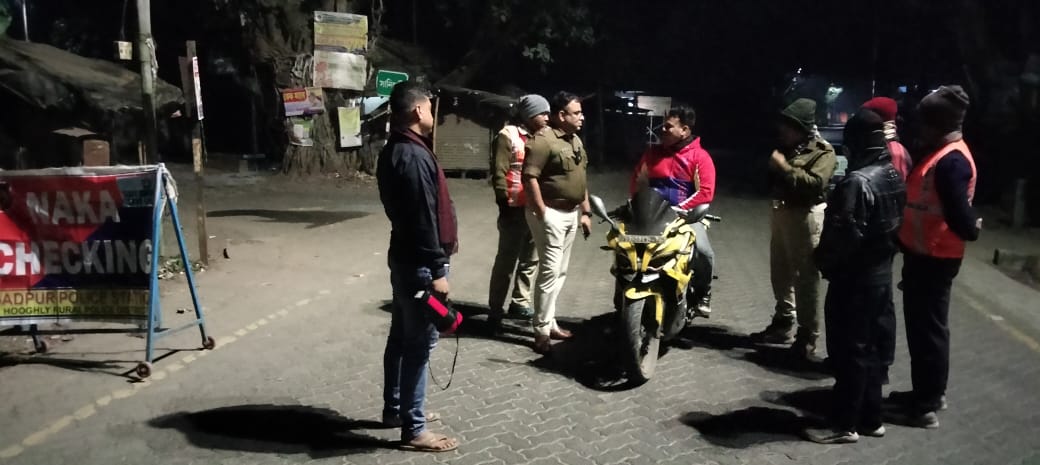 সৌরভ আদক, দাদপুর, হুগলী: হুগলী গ্রামীণ জেলা পুলিশের অধিনস্ত দাদপুর থানা এলাকায় রাত্রিকালীন নিরাপত্তা সুনিশ্চিত করতে এবং সমস্ত অপরাধ দমন করার জন্য মধ্যরাত্রিতে দাদপুর থানারতরফ থেকে বিশেষ বাহিনী সহযোগে হাইরোড লাগোয়া ১৭ -১৮নং বাসরুটের ওপরে নাকা চেকিং।
