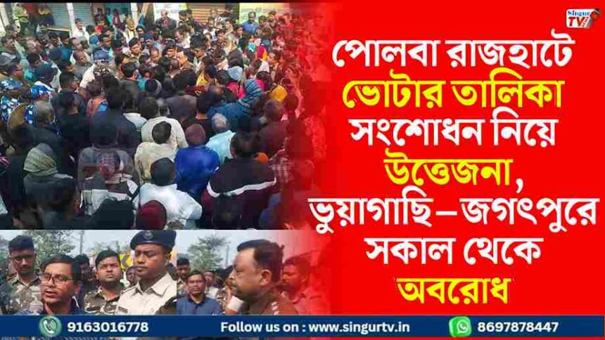 পোলবা রাজহাটে ভোটার তালিকা থেকে ৩৬৫ নাম বাদ, ভুয়াগাছি–জগৎপুরে সকাল থেকে পথ অবরোধ